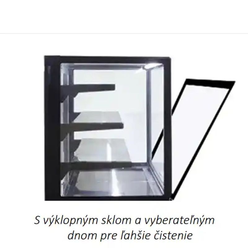 Predajná vitrína chladená EVOK ▪ moderné prevedenie vďaka hranatému sklu ▪ ideálne na vystavenie cukrárskych výrobkov ▪ vďaka silnému cirkulačnému chladeniu vhodné aj pre širokú škálu potravín ▪ 3 osvetlené chladené police a centrálne osvetlenie ▪ cirkulačné chladenie ▪ predné sklo s ofukom, výklopné ▪ digitálny termostat, teplota: +2°C ~ +4°C ▪ pri okolitej teplote 25°C a 60% vlhkosti ▪ veľký výber farebných kombinácií v cene ▪ dostupné aj prevedenie na vzdialený agregát, ohrevné HOT aj neutrálne prevedenie ▪ dostupné aj prevedenie LUX s LED osvetlením a bočnými farebnými panelmi ▪ dostupné aj ďalšie prevedenia (samoobslužné, obojstranné dvierka)