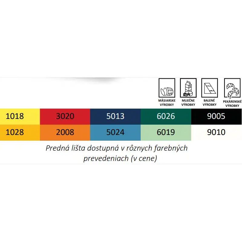 Predajná vitrína SALINA 498 l ▪ perfektná voľba, vďaka kompaktným rozmerom ▪ cirkulačné chladenie ▪ s chladeným odkladacím priestorom v spodnej časti ▪ prevedenie s agregátom (dostupné aj bez agregátu) ▪ digitálny termostat, teplota: +3°C ~ +5°C (pri okolitej teplote +25 °C a 60% vlhkosti vzduchu) ▪ veľký výber farebných a tvarových variácií ▪ predné sklo s ofukom, výklopné ▪ bez police a posuvných dvierok (možné objednať) ▪ s osvetlením (neónové, možné objednať s LED) ▪ dostupná aj s hranatým sklom, v ohrevnom alebo ▪ neutrálnom prevedení a mnohé iné variácie