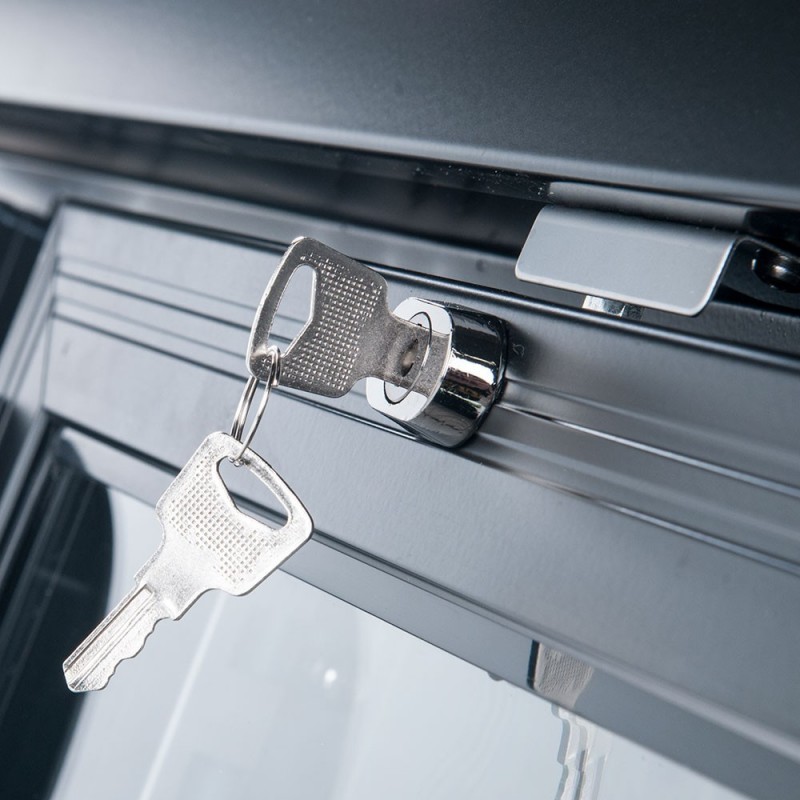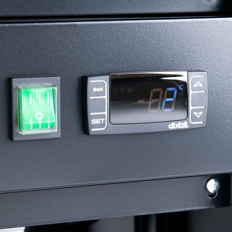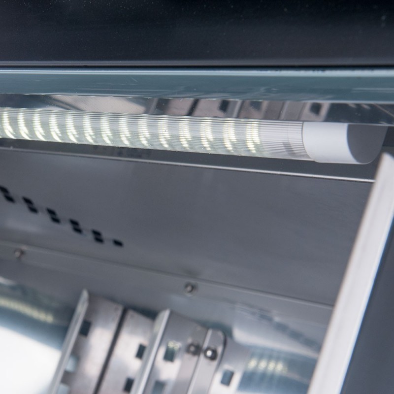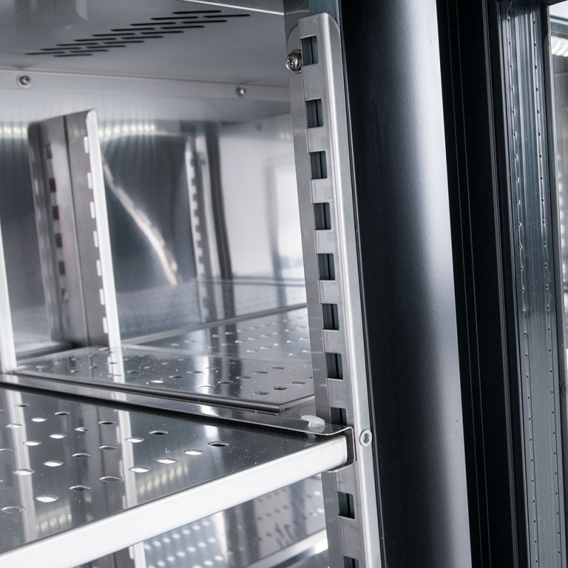 Presklený barový chladiaci pult STALGAST® - dvojdverový pult s objemom 350 l - čierne prevedenie, práškové lakovanie - cirkulačné chladenie, automatické odmrazovanie - digitálny termostat: +2°C do +8°C - s vnútorným osvetlením - rozmery: 1462 x 535 x 860 mm - prípojka: 280 W – 230 V
