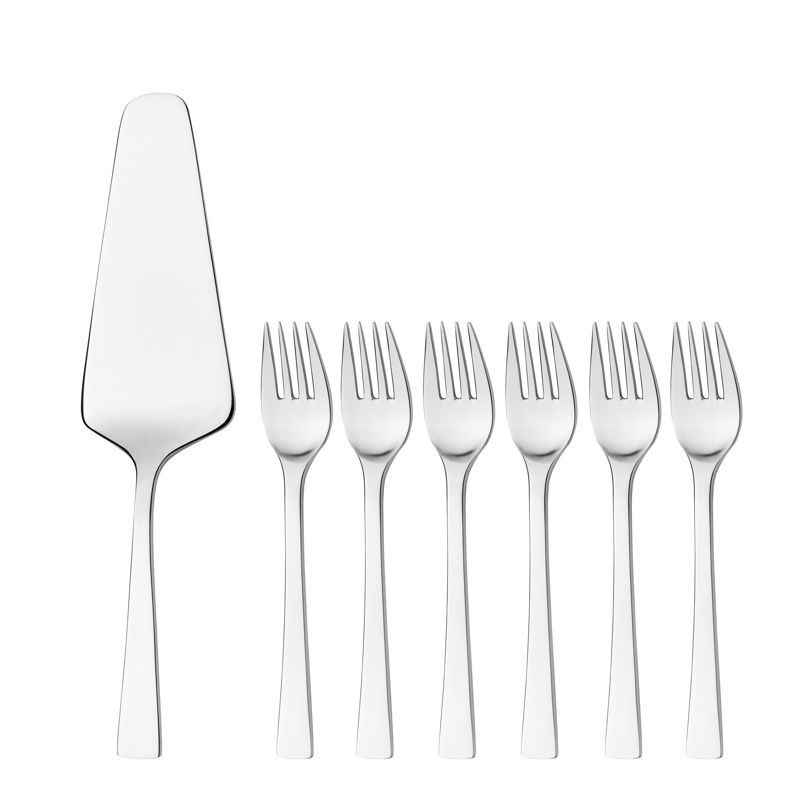 7 dielna súprava na múčnik Alpha. Múčniková súprava 7 dielna obsahuje: 6 x vidlička na múčnik (155 mm), 1 x lopatka na tortu (210 mm).