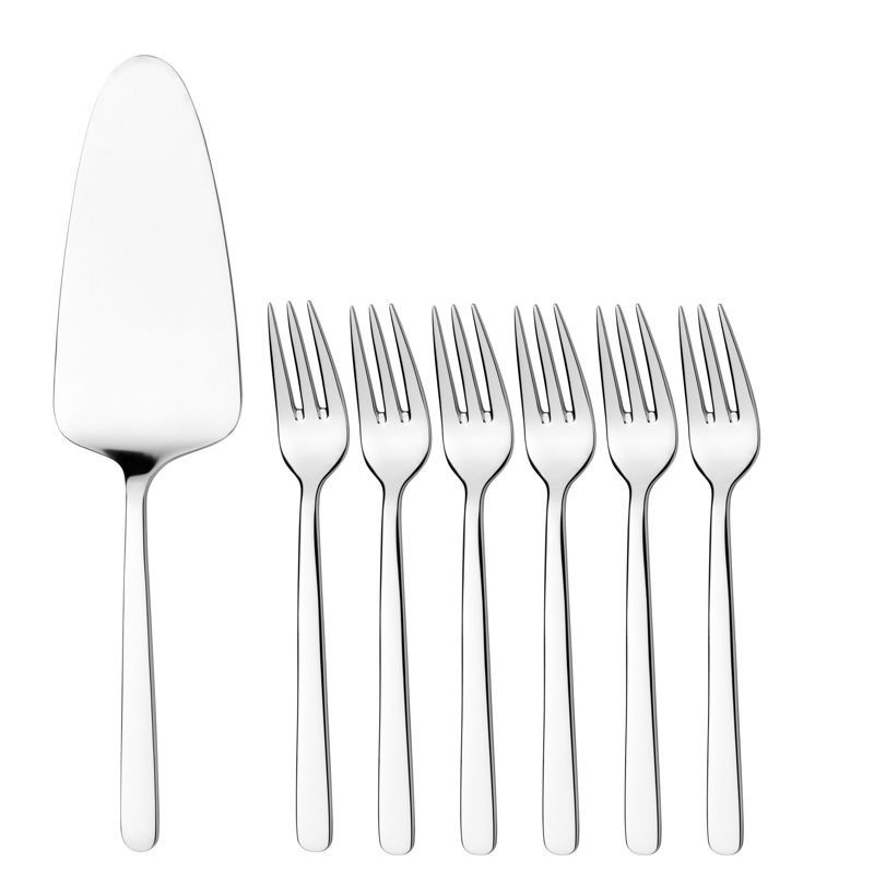 7 dielna súprava na múčnik Beta. Múčniková súprava 7 dielna obsahuje: 6 x vidlička na múčnik (155 mm), 1 x lopatka na tortu (224 mm).