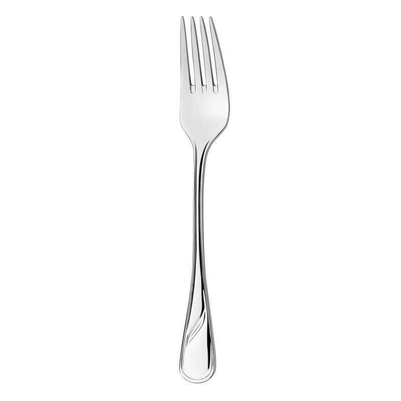Stolová vidlička Carina. Vidlička stolová (jedálenská) používa sa najčastejšie pri stolovaní na napichovanie, premiestňovanie a konzumáciu jedla. Vyrobená je z plne recyklovateľnej chrómniklovej ocele pod označením 18/10, ideálnym materiálom pre styk s potravinami. Celková dĺžka 198 mm.