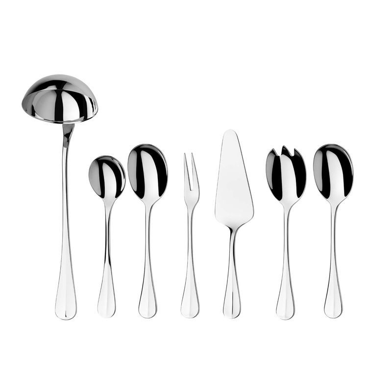 Casino 7 dielna súprava prekladacích dielov. Súprava predkladacích dielov 7 dielna obsahuje: 1 x naberačka na polievku, 1 x predkladacia lyžica, 1 x predkladacia vidlička, 1 x lyžička na omáčku, 1 x lopatka na tortu, 1 x vidlička na šalát, 1 x lyžica na šalát.