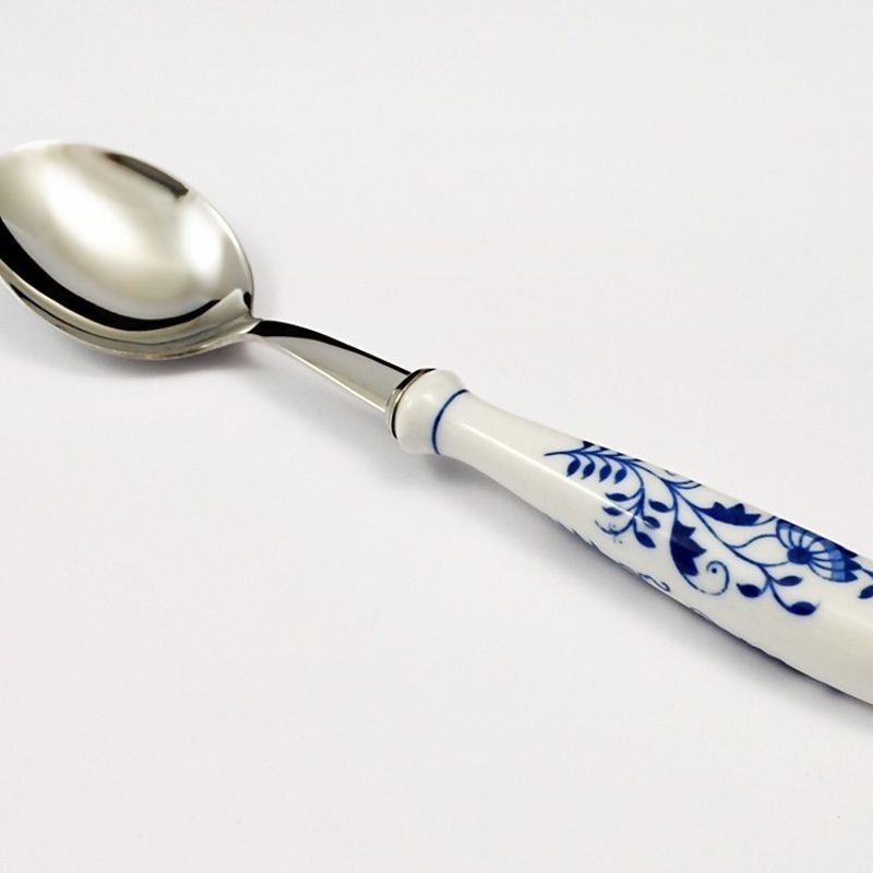 Lyžica CIBULÁK. Porcelánová rukoväť s originálnym dekorom, materiál: nerez 18/10, mechanicky leštené do vysokého lesku.