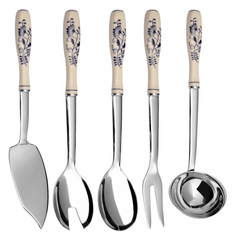 Závesná 5-dielna kuchynská súprava CIBULÁK v darčekovom balení. Porcelánová rukoväť s originálnym dekorom, materiál: nerez 18/10, mechanicky leštené do vysokého lesku. Dajú sa dokúpiť i jednotlivé diely. Darčekové balenie: rozmer 300x200x100 mm, hmotnosť výrobku: 1260 g.