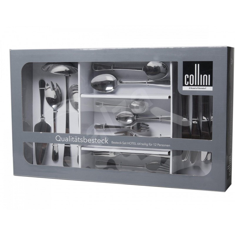 Príbor Hotel - 64 dielna súprava. Obsahuje: 12 x lyžica stolová, 12 x vidlička stolová, 12 x nôž stolový, 12 x lyžička na kávu, 12 x vidlička na múčnik, 1 x naberačka na polievku, 1 x lyžica na šalát/predkladacia, 1 x vidlička na šalát/predkladacia.