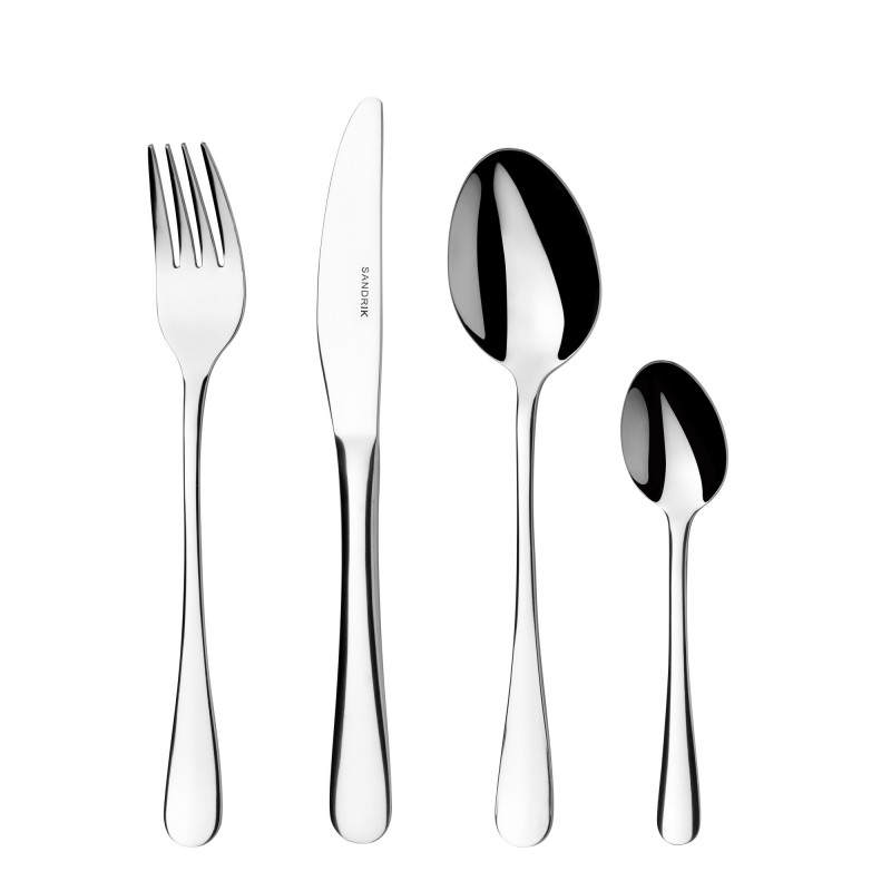 Súprava príborov 24 dielna (kiwi). Súprava príborov 24 dielna obsahuje: 6 x lyžica stolová (198 mm), 6 x vidlička stolová (196 mm), 6 x nôž stolový (208 mm), 6 x lyžička na kávu (138 mm).
