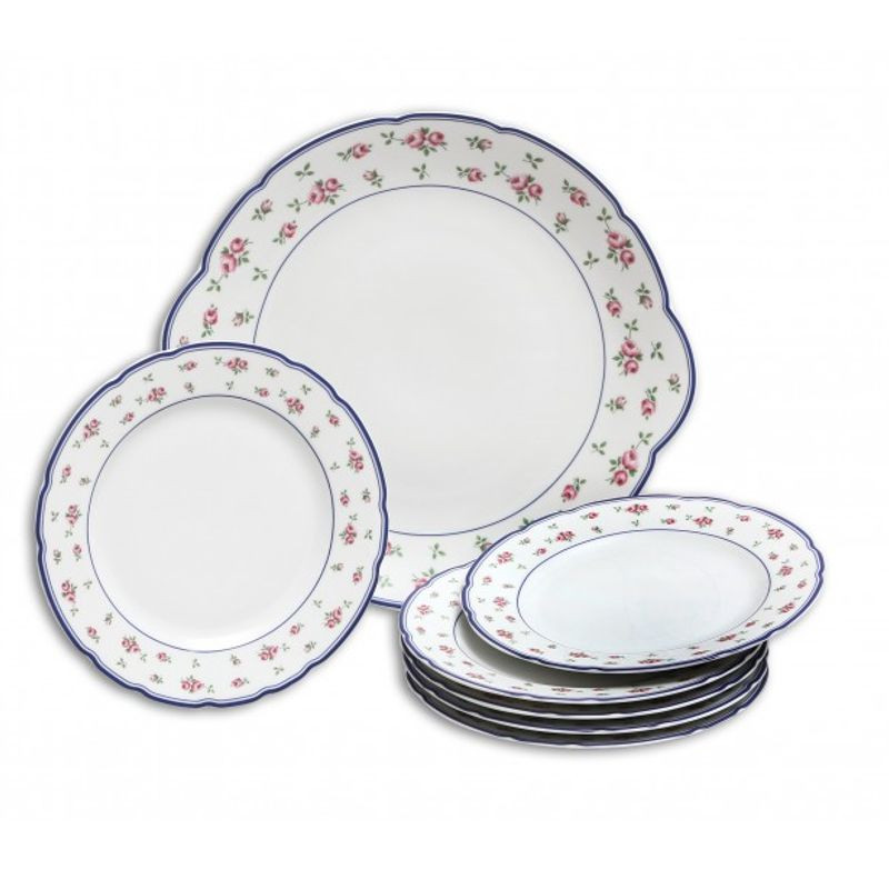 Koláčová súprava Rose, 7 D, ruža ružová pre 6 osôb. Obsahuje: 1x tanier koláčový - 27 cm, 6x tanier desertný - 17 cm