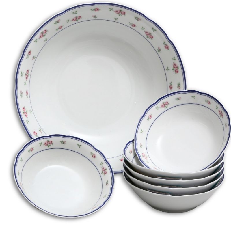 Karlovarský porcelán - Kompótová súprava Rose ruža ružová 7 dielov. Kompótová súprava je vhodná do mikrovlnnej rury a umývačky riadu. Obsahuje: 1 x kompótová misa 23 cm, 6 x kompótová miska 13 cm