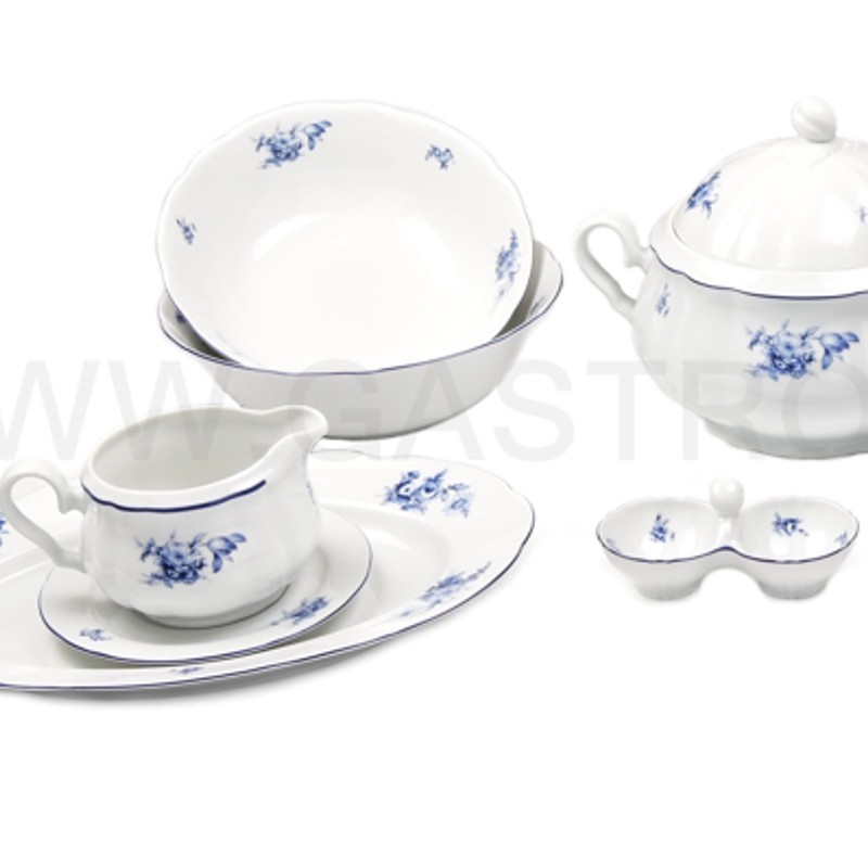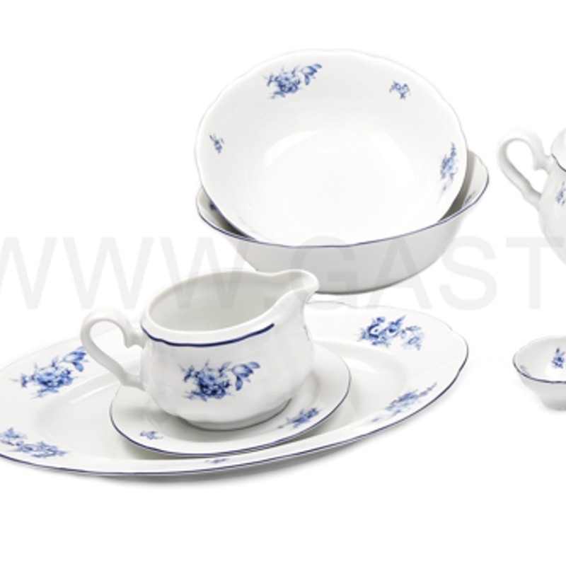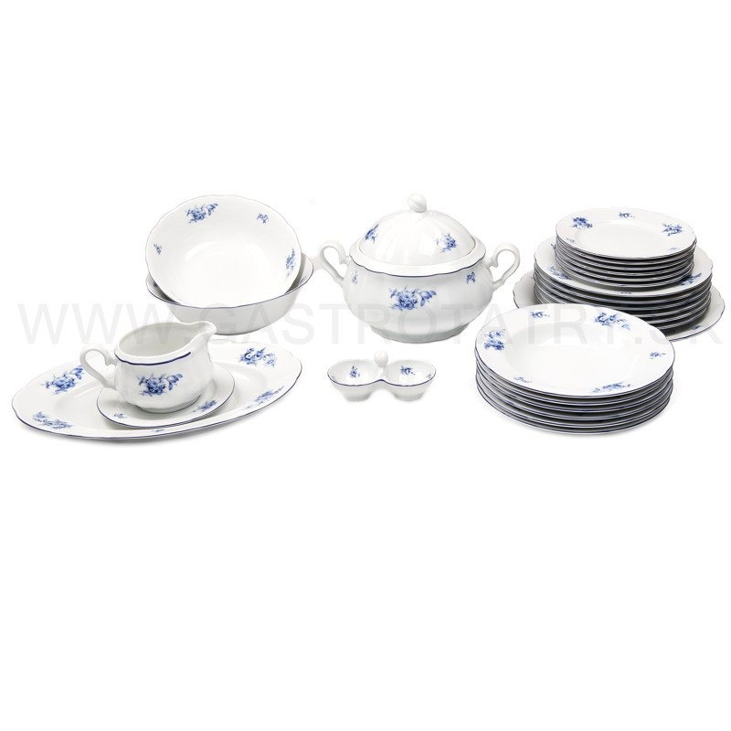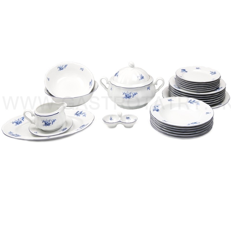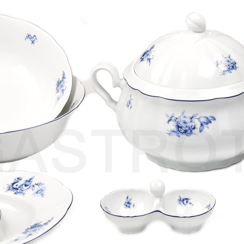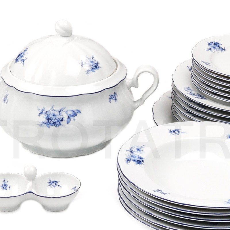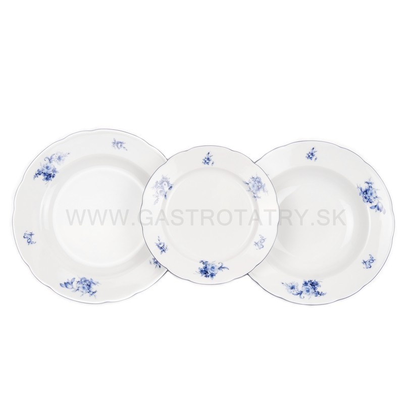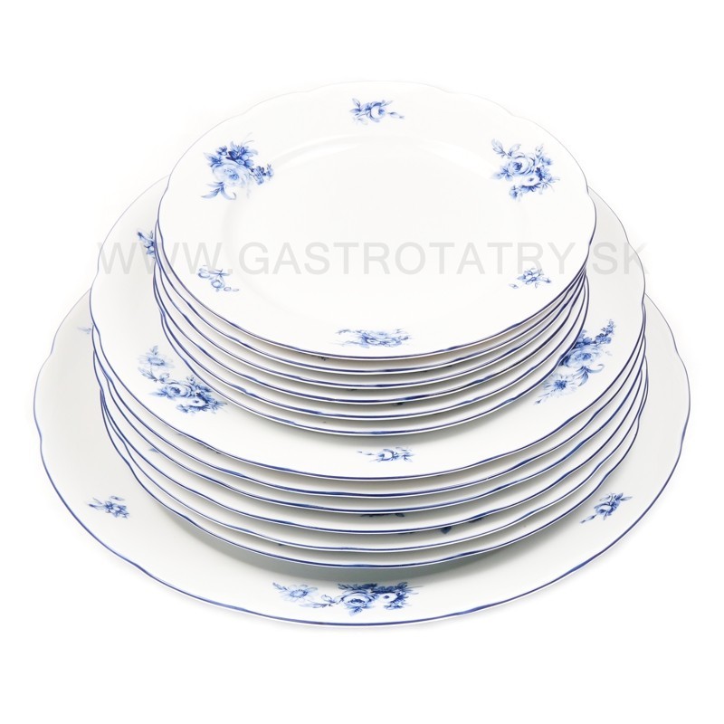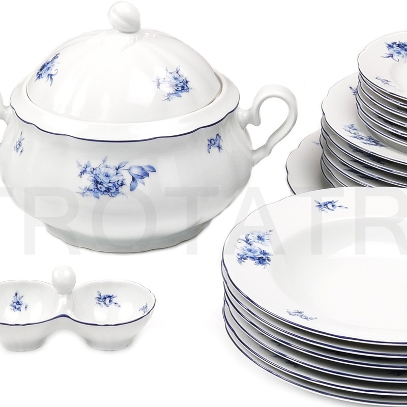 Karlovarský porcelán Rose modrý kvet+ modrá linka obedová súprava 27 D