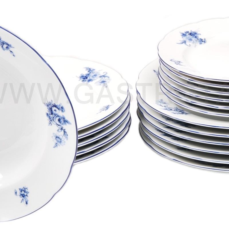 Rose modrý kvet + modrá linka tanierová súprava 18 dielna. Obsahuje: