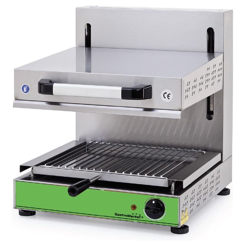 Posuvný salamander 450 ▪ ideálne na grilovanie, zapekanie alebo ohrievanie ▪ rozsah termoregulácie: do 300°C ▪ s jednou regulovateľnou zónou ▪ konštrukcia z nerezu ▪ nastaviteľná výška hornej časti ▪ s výsuvnou nádobkou na zachytávanie mastnoty a omrviniek. Rozmery 450 x 535 x 535 mm, prípojka 230 V, príkon 3 kW, hmotnosť 33 kg