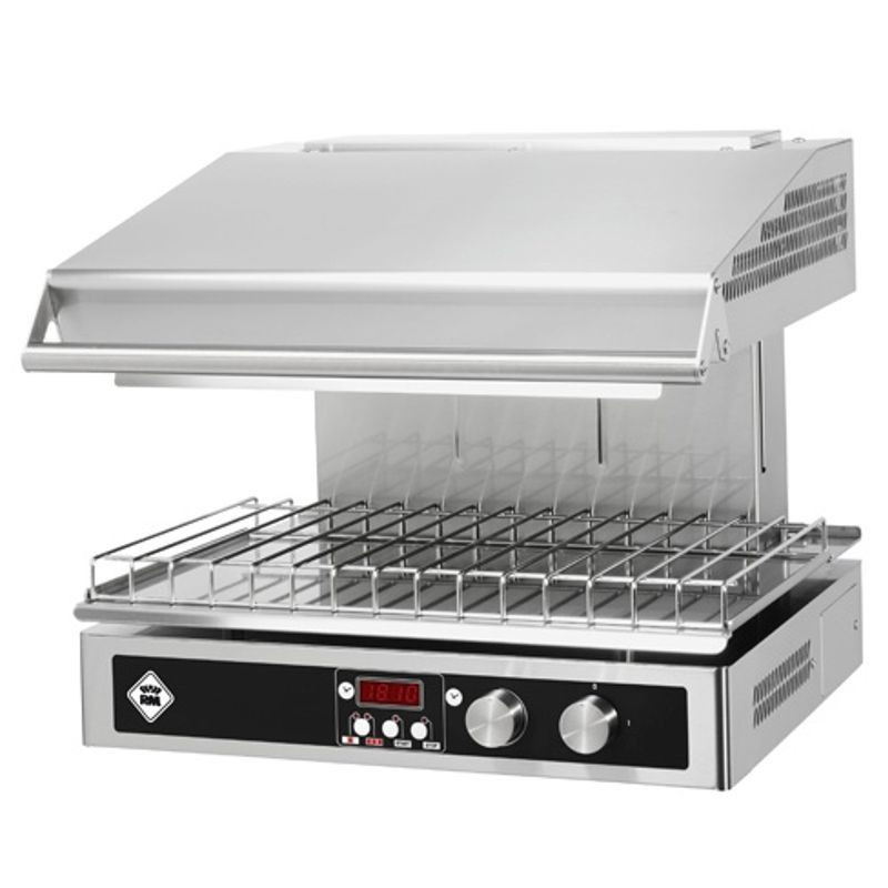 Salamander digitálny, posuvný, model SD-32, rozmery 570x580x520 mm, prípojka 400 V, príkon 4,5 KW, rozmer roštu 560x360 mm, polohovatelné výhrevné telesá,