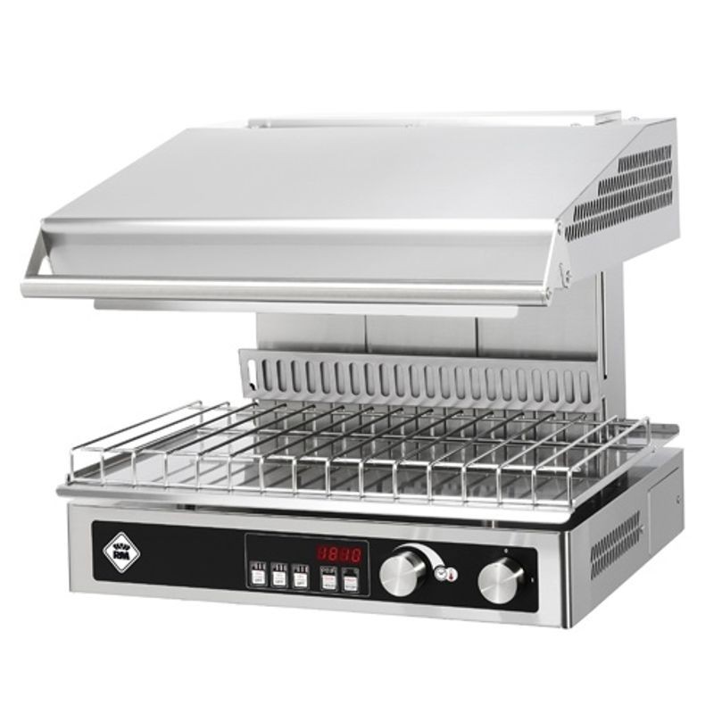 Salamander digitálny, posuvný, model SD-37, rozmery 570x580x520 mm, prípojka 400 V, príkon 4,5 kW, rozmer roštu 560x36 0mm, polohovatelné výhrevné telesá,