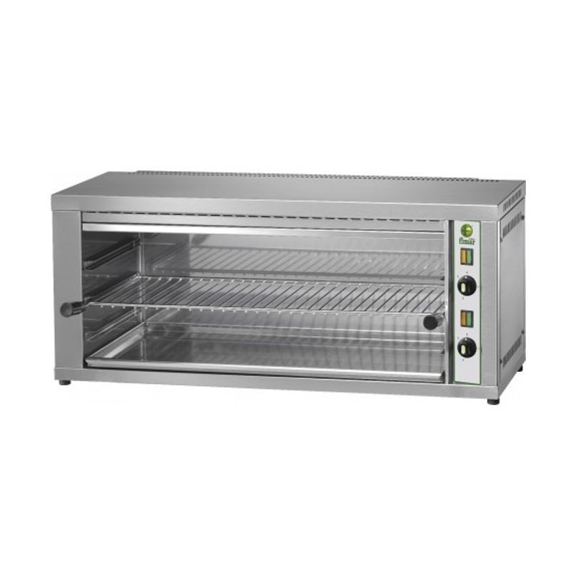 Salamander Fimar Maxi ▪ ideálne na grilovanie, zapekanie alebo ohrievanie ▪ vyrobený z nerezu ▪ s vyberateľnou zásuvkou na omrvinky ▪ termostat s 3 úrovňami výkonu ▪ ohrevné teleso umiestnené hore ▪ polohovateľný rošt 3 polohy. Rozmery 880 x 370 x 400 mm, prípojka 230 V, príkon 3,2 kW