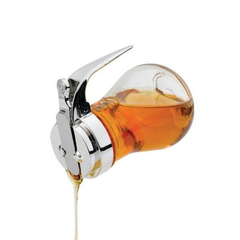 Nádobka na med s gombíkom, výška 115 mm, priemer 80 mm. Vyrobené zo skla. Kryt z nehrdzavejúcej ocele