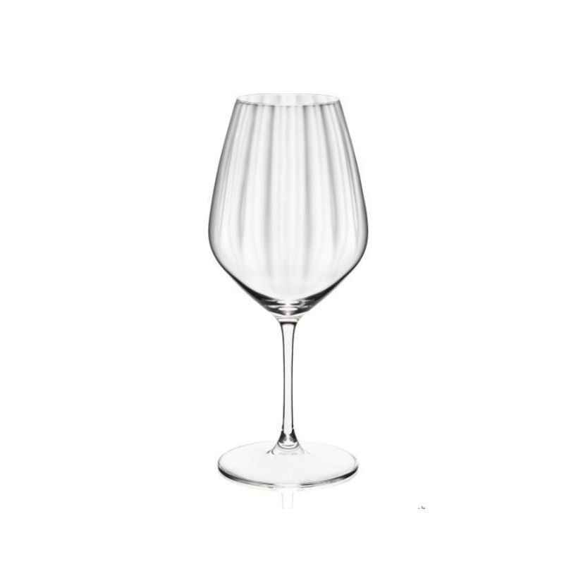Kalich Wine 570 ml OPTICAL. Verzia OPTICAL ponúka pútavú reliéfnu štruktúru, ktorá dodáva sklu optickú elasticitu a lepšie prevzdušňuje a otvára víno. Klasický tulipánový tvar kalichov zvýrazňuje vôňu a farbu červeného a bieleho vína. Dizajn vhodný do všetkých typov interiérov. OPTICAL udržiava retro módu na vyššej úrovni. Okrem vínových kalichov v 4 objemoch a pohárov v 2 veľkostiach, sú novými členmi kolekcie aj 2 vázy.