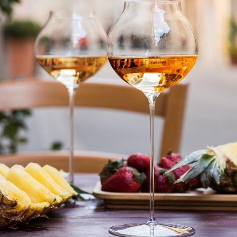 Nový tvar ultraľahkého kalicha, vyvinutého špeciálne pre najnovší trend- oranžové vína. Jediný a jedinečný! V úžasnej sklovine sa zaskvie svetlo zlatá až jantarová farba mladých odrôd. Kalich je skôr baňatý a zatvorený, pretože senzorické vlastnosti tohto vína si žiadajú podmienky, ktoré sa podobajú mladým červeným vínam. Nechajte k Vám prehovoriť toto úžasné sklo spojené s prírodou v chuti hrozna.