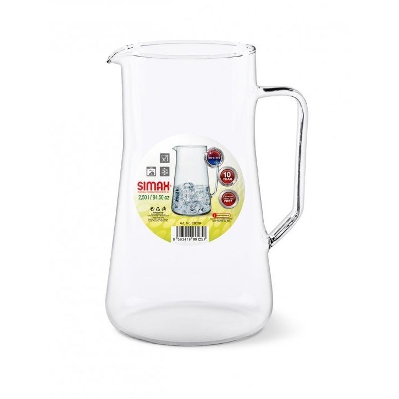 Džbán je vyrobený s kvalitného odolného skla SIMAX použiteľný od -40ºC do + 300ºC. Vhodný do umývačky riadu. Vyrobený z recyklovateľnej skloviny bez kadmia a olova. Dodržujte zásadu pomalého ochladzovania. Umývajte jemnými prostriedkami, ktoré sklo nepoškriabu.