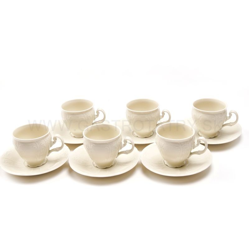 Šálky s podšálkami mokka ivory bez dekoru 115 Bernadotte 12 dielne. Obsahuje 6x šálka, objem 90 ml, tanierik - podšálka, priemer 115 mm