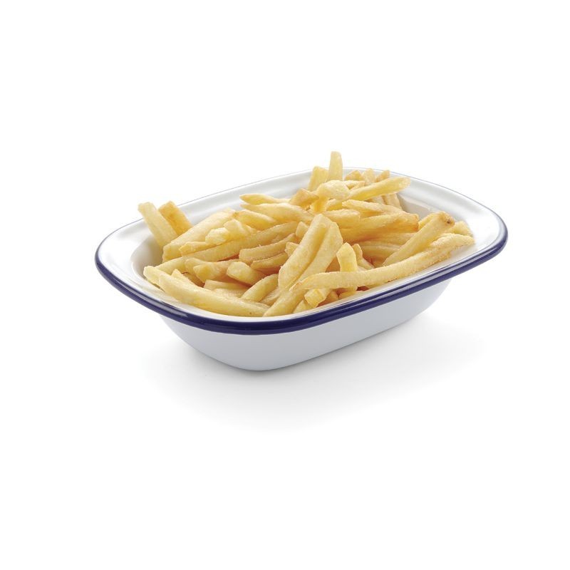 Misa hranatá smaltovaná dĺžka 215 x šírka 160 mm. Vyrobené z ocele s bielym smaltom s modrým okrajom. Vysokokvalitný smalt odolný voči oderu. Stohovateľné pre pohodlné skladovanie. Vhodné do umývačky riadu. Vhodné do rúry. Nevhodné do mikrovlnnej rúry.