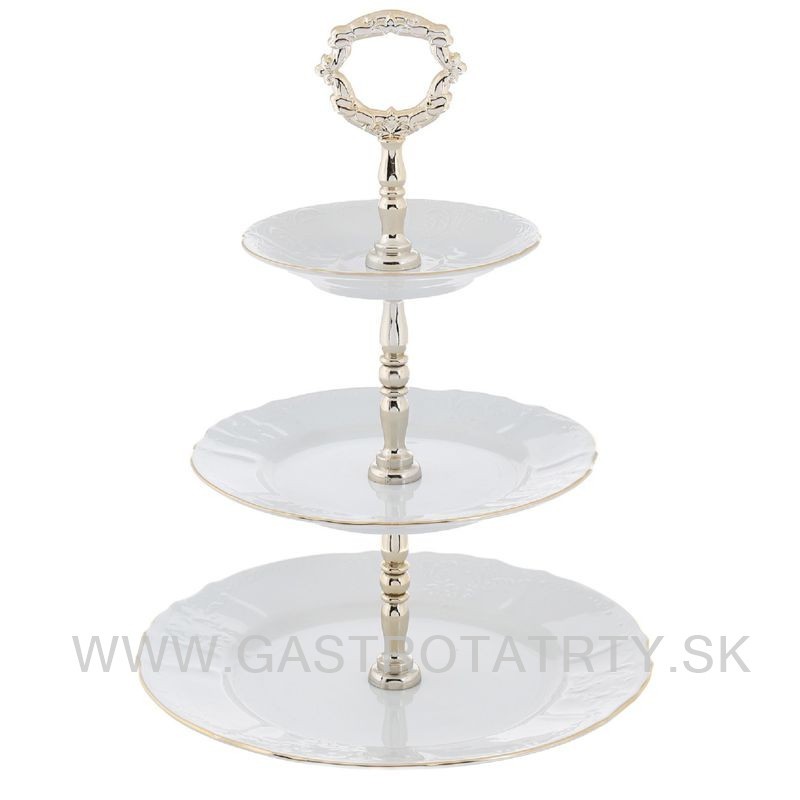 Karlovarský porcelán - Etažérka Bernadotte biela 3- poschodová, zlatá linka.