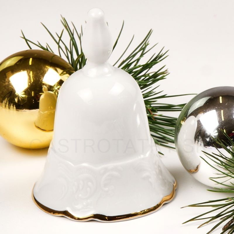 Zvonček s rolničkou biely zlatá linka Bernadotte - karlovarský prcelán.