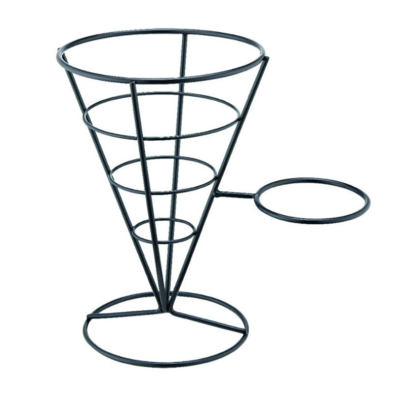 Servírovací kornút - čierny s držiakom na omáčky, rozmery: 220 x 145 x 215 mm