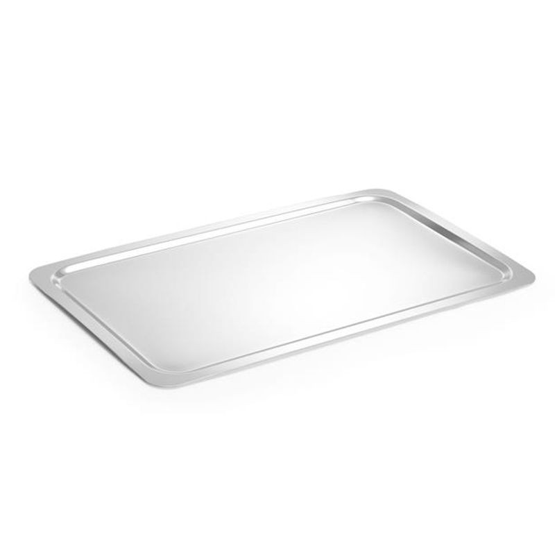 Tácka na bankety, veľkosť GN 1/1 s hladkým okrajom, rozmery: dĺžka 530 x šírka 325x výška 10 mm. Vhodné pre chladiacu vitrínu H424186. Vyrobené z nehrdzavejúcej ocele s lešteným povrchom. Matný povrch okraja. Vhodné do umývačky riadu.