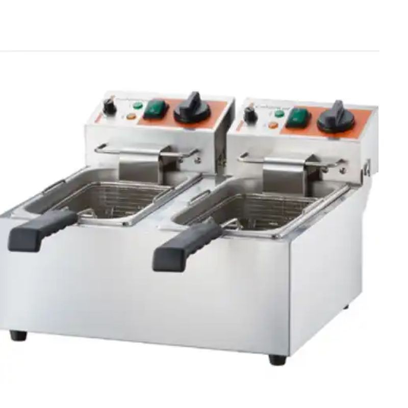Fritéza Caterina 2x5 l ▪ vyberateľná fritovacia nádoba ▪ odnímateľné vyhrievacie teleso ▪ rozsah termoregulácie: 60°C ÷ 200°C ▪ poistný termostat ▪ chladná zóna pod špirálami ▪ nie sú vhodné na sústavný chod!