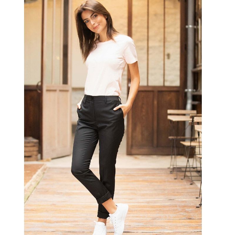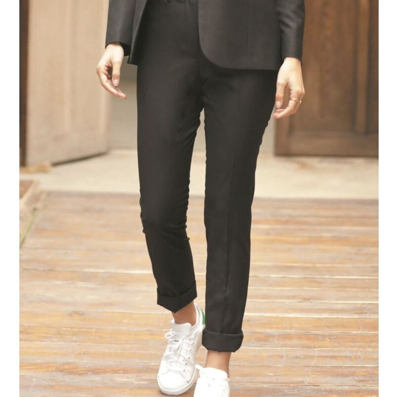 Tieto nohavice tvoria základ ženského šatníka. Majú užší strih, avšak vďaka materiálovému zloženiu a elastickému pásu sú vhodné pre všetky typy postáv. Môžete ich nosiť k saku či ako voľnočasové nohavice. Prosím, pre výber veľkosti si dôkladne pozrite veľkostnú tabuľku.