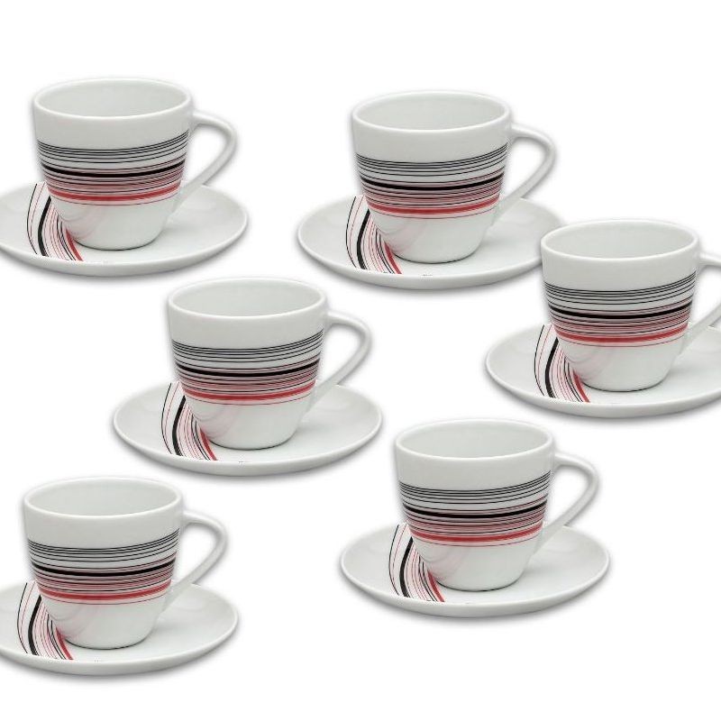 Šálky s podšálkami čajové 155 Sylvie prúžky 12 dielna. Obsahuje: 6x šálka, objem 220 ml, 6x podšálka, priemer 155 mm