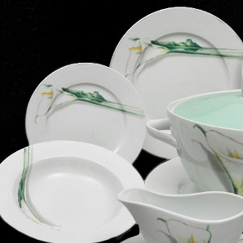Karlovarský porcelán - Tanierová súprava 18 dielna Sylvie (Jana) s kalami, je vhodná do umývačky riadu aj do mikrovlnnej rúry.