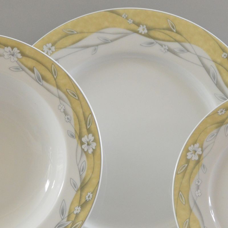 Karlovarský porcelán - Tanierová súprava 18 D Sylvia (Jana) žltý pás, je vhodná do umývačky riadu aj do mikrovlnnej rúry.