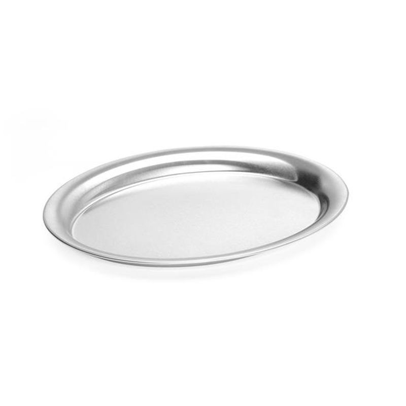 Servírovací podnos, oválny, dĺžka 265 mm, šírka 195 mm. Satinovaný. Vyrobený z nehrdzavejúcej ocele