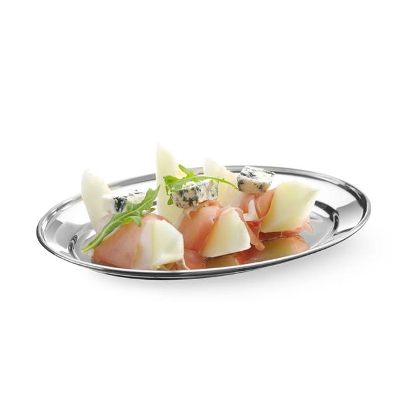 Tácka oválna, rozmery: dĺžka 300 x šírka 220 mm. Vyrobená z nehrdzavejúcej ocele