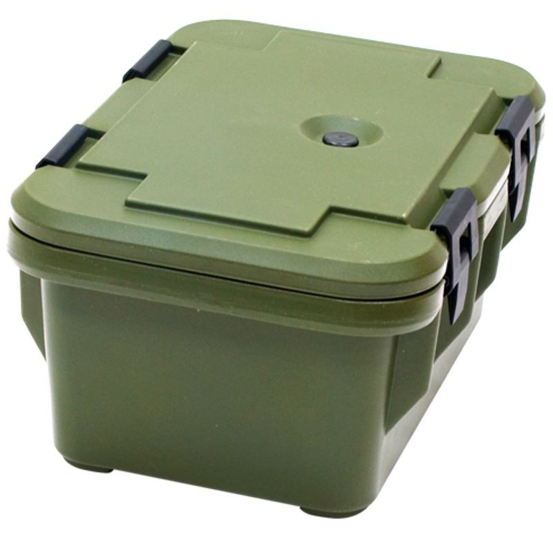 Termoizolačný kontajner GN 1/1 max 200 mm, výborné termoizolačné vlastnosti, pre GN nádobu s hĺbkou 200 mm,z vysoko odolného polypropylénu s extra hrubou penovou izoláciou,uzatváranie na 4 pracky. Všetky typy kontajnerov sú velmi jednoducho stohoveteľné.
