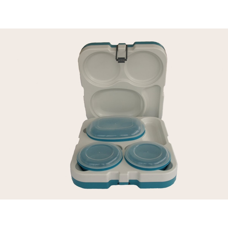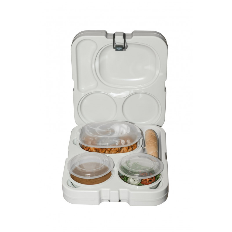 Na prenos jedla, rozmer: 35x40x12,3 cm, termoizolačná vložka, obsah: 2 x miska priemer 15,5 cm/0,5 l + viečko, 1 x miska oválna 23, 5x18 cm/1 l + viečko, odporúčaná max. teplota pri umývaní obalu termoboxu v umývačkách riadu 70°C, odporúčaná teplota pre vkladaný obsah min. 80°C, hmotnosť 1,73 kg Popruh upínací univerzálny na zopnutie 2 – 4 ks termobox nie je súčasťou termoboxu DOKUPIŤ TU