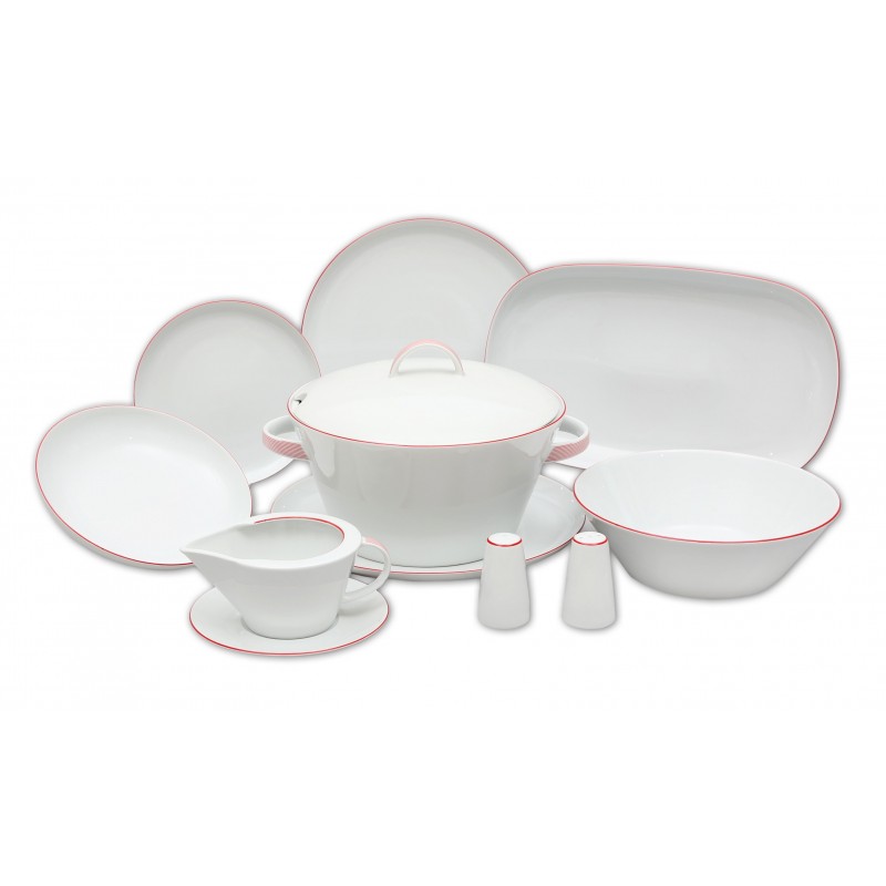Karlovarský porcelán Tom červená linka obedová súprava 27 D.