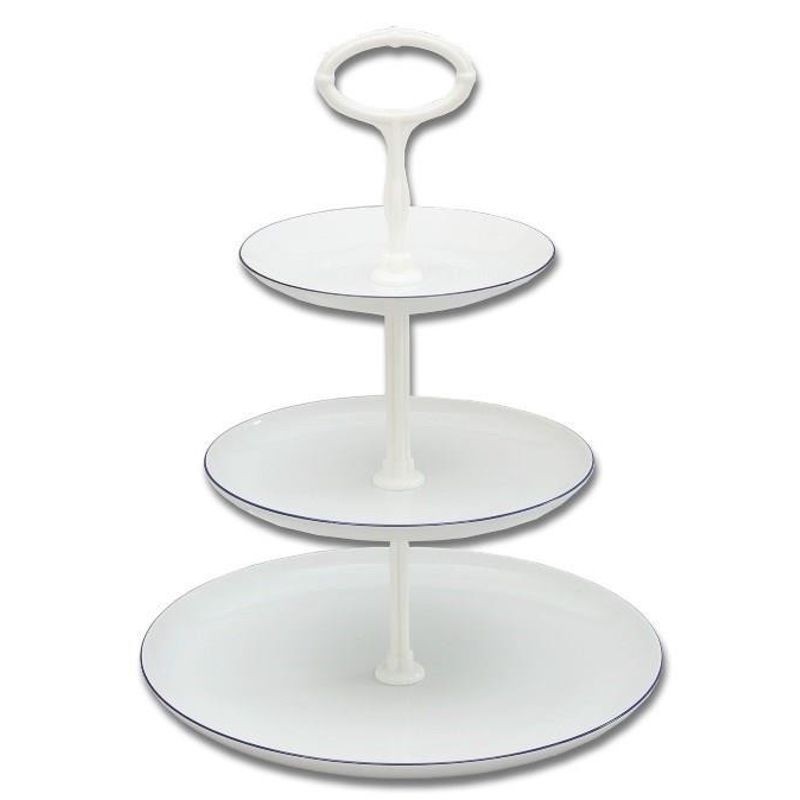 Karlovarský porcelán Etažerka Tom s modrou linkou - trojposchodový tanier doplnený plastovým alebo dreveným kľúčom.