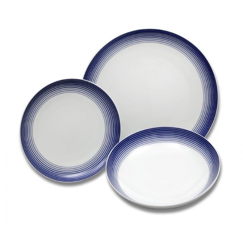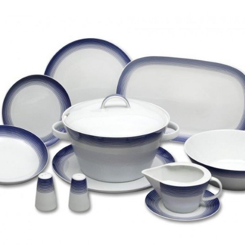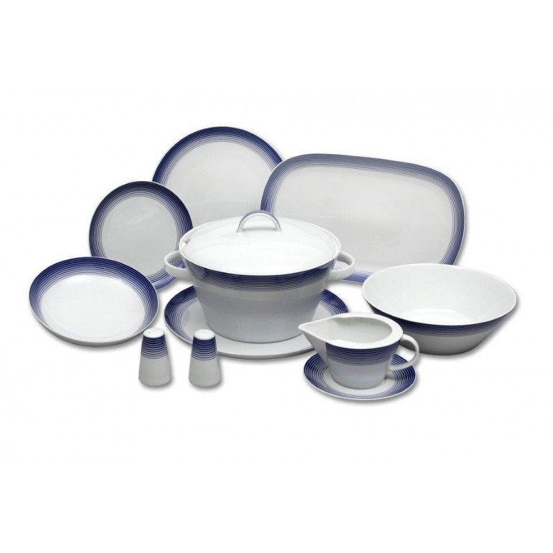 Karlovarský porcelán Tom modré pruhy obedová súprava 27 D.
