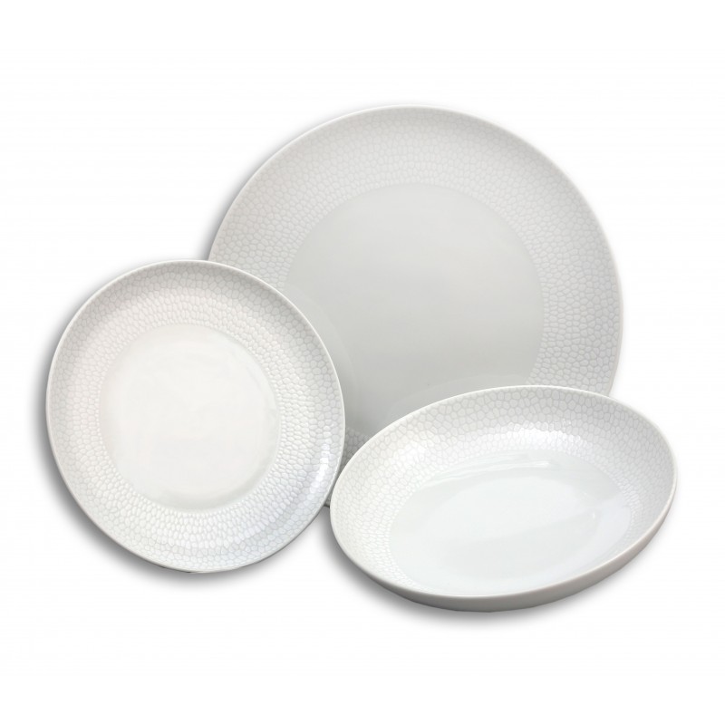 Tanierová súprava 18 dielna Tom biela mozaika. Obsahuje: 6 x tanier plytký 26 cm, 6 x tanier hlboký 20 cm, 6 x tanier dezertný 19 cm