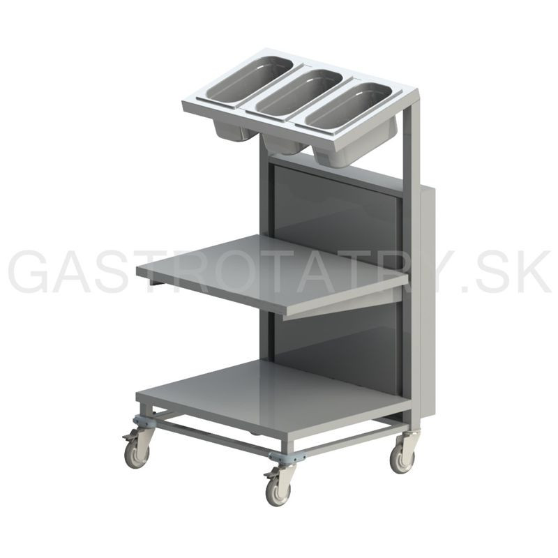 Polohovací vozík na tácky a príbory, hĺbka 650 mm šírka 670 mm, výška vozíka štandardne 1200 mm ▪ 4 kolieska (2 brzdené)