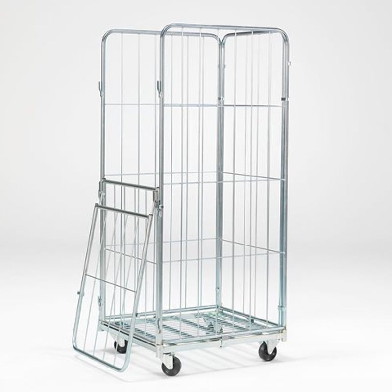 Transportný klietkový vozík. Flexibilný klietkový vozík je vyrobený z galvanizovanej ocele a nájde využitie predovšetkým pri transporte a skladovaní menšieho tovaru, balíkov a škatúľ. Je vybavený 4 stenami, z ktorých 2 sú na uľahčenie prístupu delené. Horné dvierka sú výklopné.