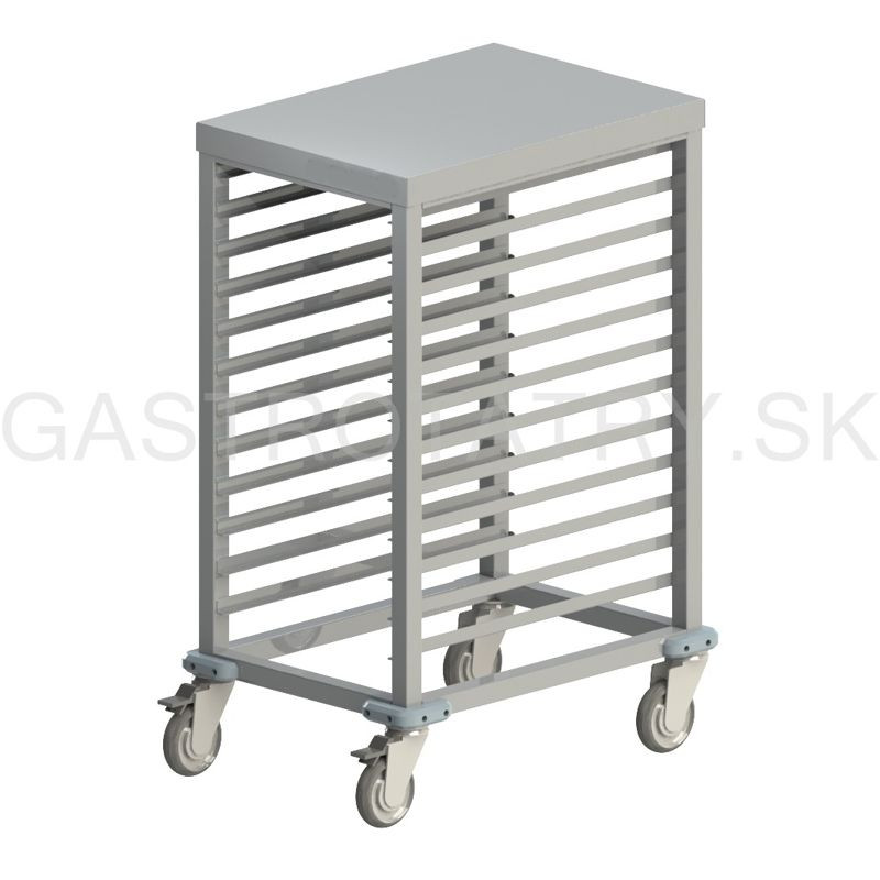 Vozík na gastronádoby - s pracovnou doskou, hĺbka 565 mm, šírka 400 mm, výška vozíka štandardne 900 mm ▪ 4 kolieska (2 brzdené) ▪ vedenie na GN