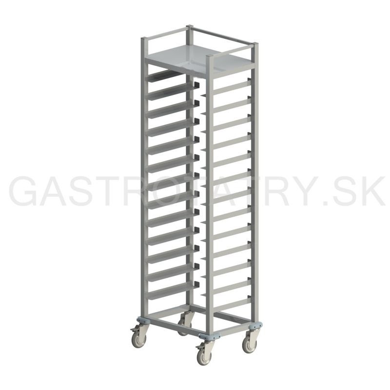 Vozík na podnosy s policou - jednoradový, hĺbka 370 mm, šírka 520 mm, ▪ výška vozíka štandardne 1700 mm ▪ 4 kolieska (2 brzdené)