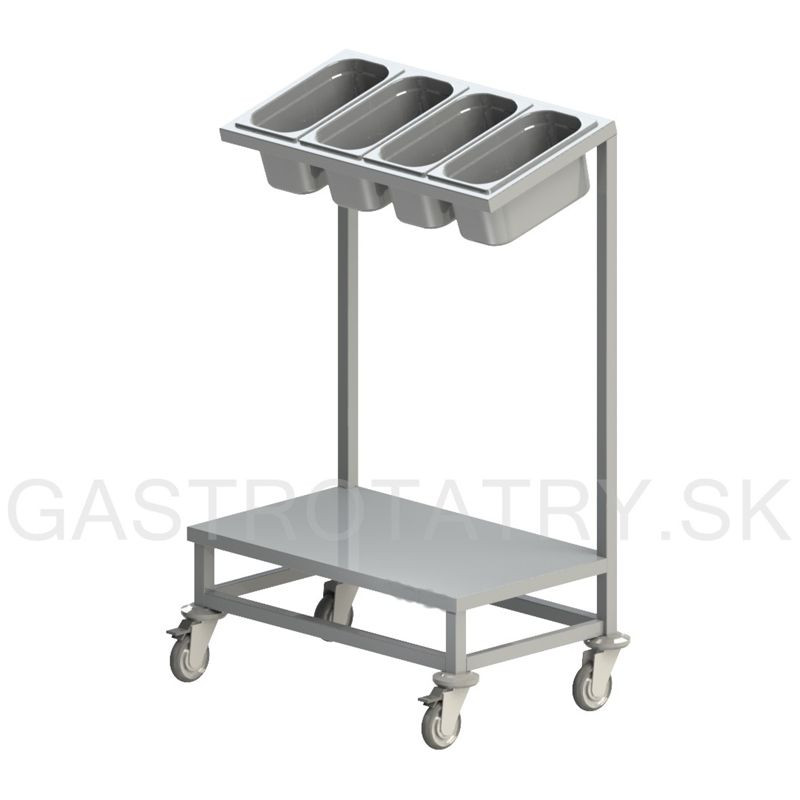 Zásobník na príbory, tácky a pečivo, hĺbka 450 mm, šírka 750, výška vozíka štandardne 1200 mm ▪ 4 kolieska (2 brzdené)