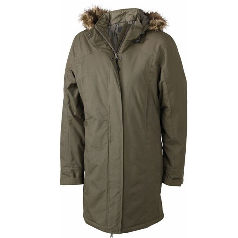 Dámska bunda NICHOLSON. Dámska teplá bunda z odolnej, predušnej tkaniny, kapuca z umelej kožušiny s príklopkou proti vetru a vode, dve predné vrecká, dve bočné vrecká, dve náprsné vrecká