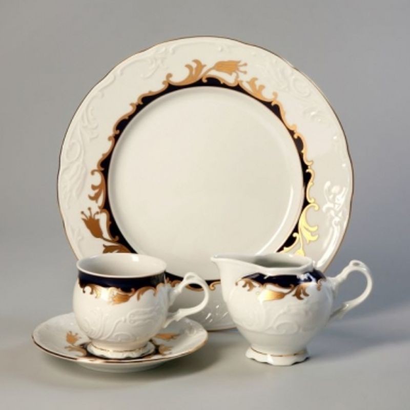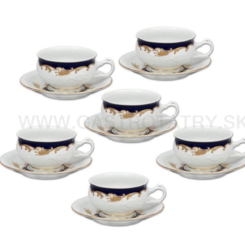 Karlovarský porcelán Tulip - výrazný zlatočierný ornament - zlatá linka, tanierová 18-dielna SP, reliéfny povrch, zvlnené okraje, precízne vypracovanie, výrazné ušká a úchytky. Tanierová súprava nie je vhodná do mikrovlnej rúry a umývačky riadu. Na objednavku dodanie 2 mesiace.