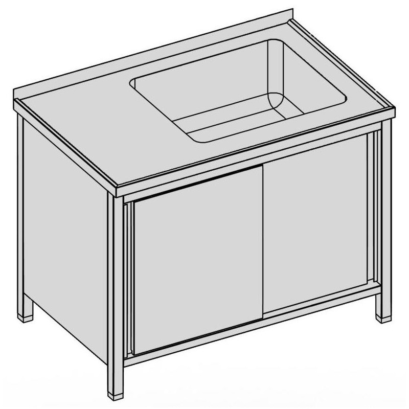 Umývací stôl s vaňou skrinkový s posuvnými dverami, hĺbka 700 - 800 mm, šírka 1000 - 1800 mm, výška V=850 mm (-10/+25 mm), zadný lem 40 mm, zadné nohy odsadené 25 mm, lisovaná vaňa 600x500x300 mm, posuvné dvere, krytovanie, polica vo výške 150 mm, nosnosť 50 kg/1 polica, možné úpravy